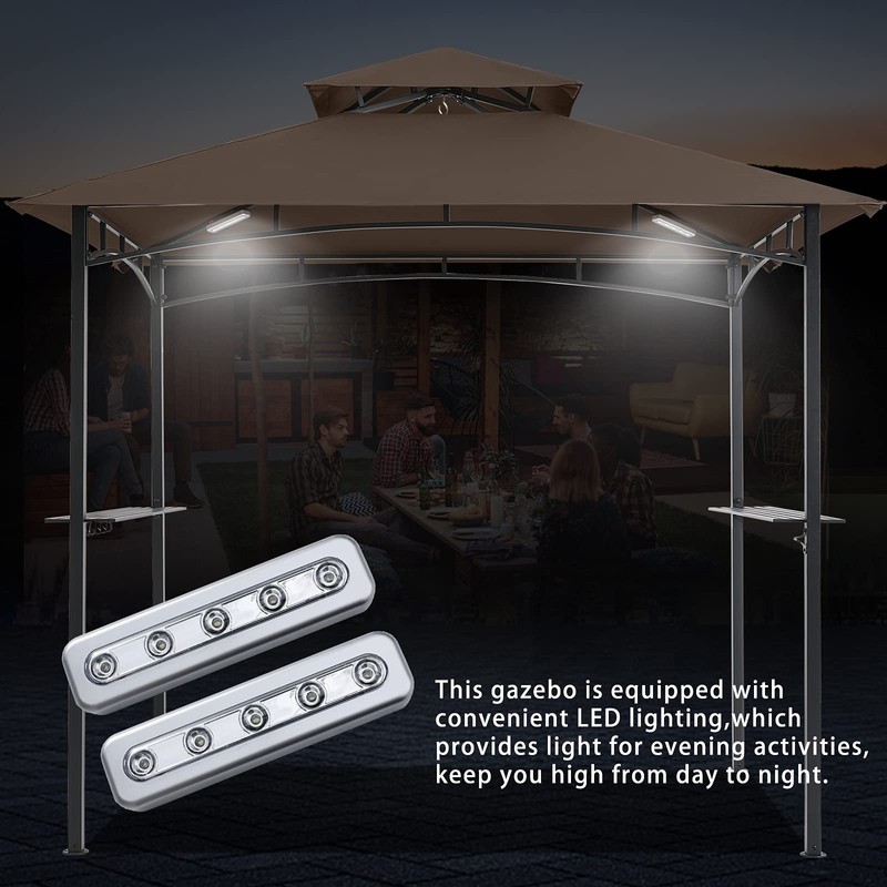 COOSHADE 8'x 5' Grill Gazebo Double Tiered Outdoor BBQ Gazebo Canopy with LED Light (Brown)