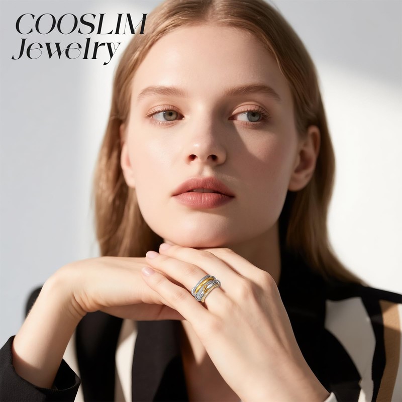 - Women's Stackable Rings - This chunky ring set includes two plain gold band rings and two cubic zirconia silver rings, all connected by a cute gold jump ring. Which will effortlessly enhance your sense of style.
