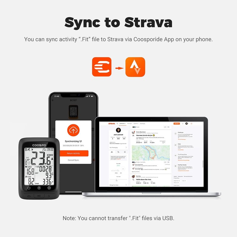 - ✅Sync Activity(.fit file) to Strava: You can also sync activity(.fit file) to Strava via Coosporide App on your phone by bluetooth directly.CooSpo bike computer can record 80 hours of your riding data.