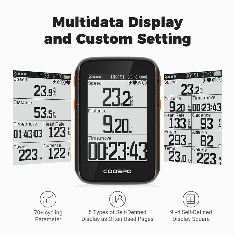 - ✅COOSPO BC200 GPS Bike Computer - The bike computer equipped with a 2.6" large LCD display with auto-backlight, Easy to read in sunlight or low-light conditions, 1200mAh large capacity battery lasts for 36 hours, IP67 waterproof,support cycling data like including Distance, Time, Altitude, Slope, Temperature, Atmospheric Pressure, Cycling Power and so on.