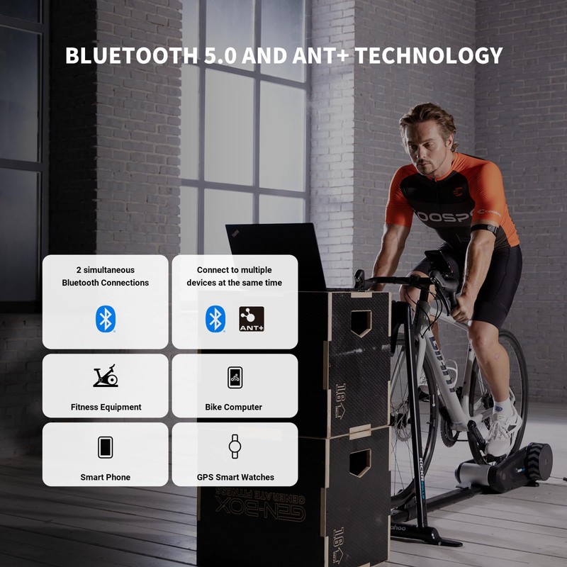 - ④CONNECTIVITY: Bluetooth 5.0 and ANT+ guarantee that you can connect COOSPO HW9 Armband heart rate sensor with GPS bike computers/APP/Fitness Devices/Running Watches. You can have two simultaneous Bluetooth connections with the latest technology.