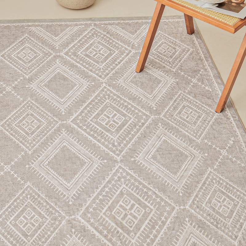 COOVA Vintage Printed Extra Large Living Room Area Rug – Kid and Pet Friendly 6x9ft Rug, Non-Shedding Soft Non-Slip Area Carpet, Foldable Bedroom Rug, Eco-Friendly Washable Rug,Rhombus Taupe
