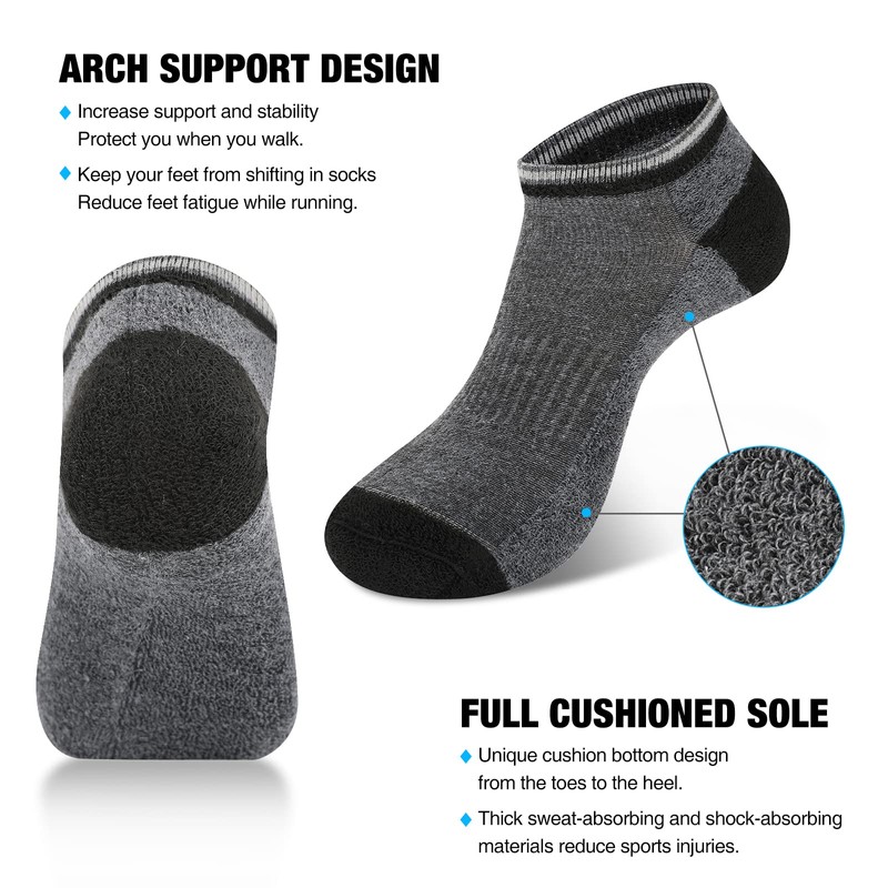 - Mens Ankle Socks: Reinforced heel and toe for enhanced durability in high-wear areas in improve product life.