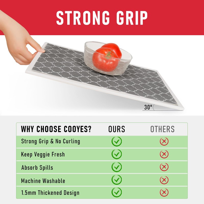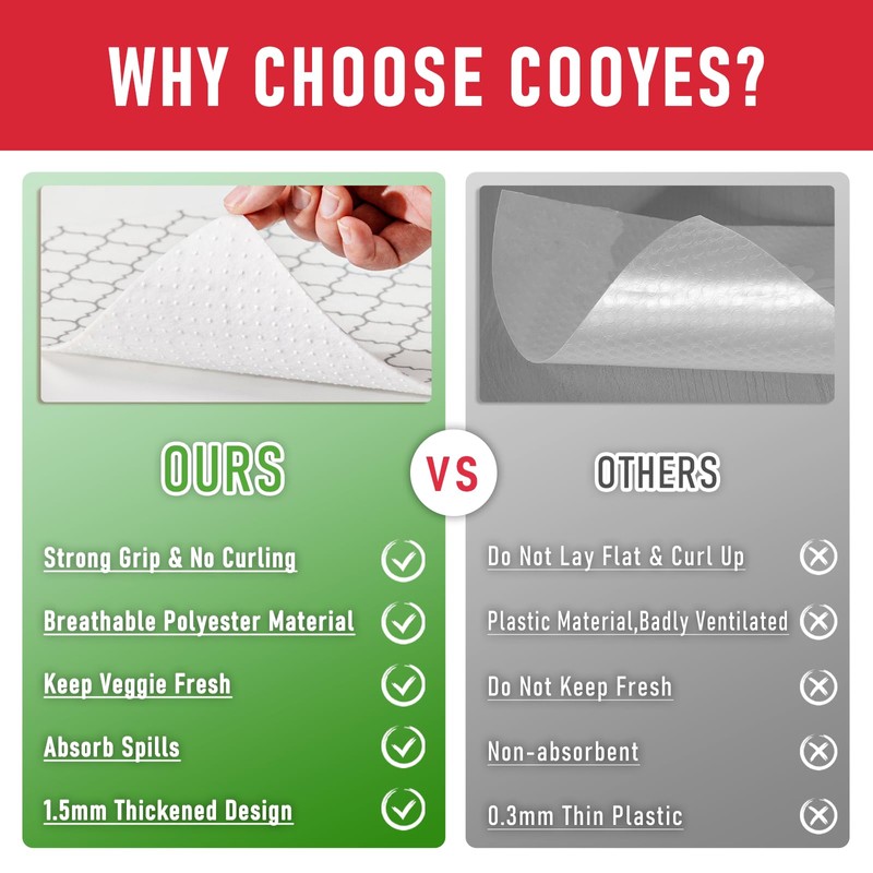Cooyes Drawer Liner for Shelf and Refrigerator, 2 in 1 Fridge Drawer Liners & Fresh mats for Glass Shelves Bins, BPAfree Absorbent Cloth Material - Keep Produce Fresh Longer