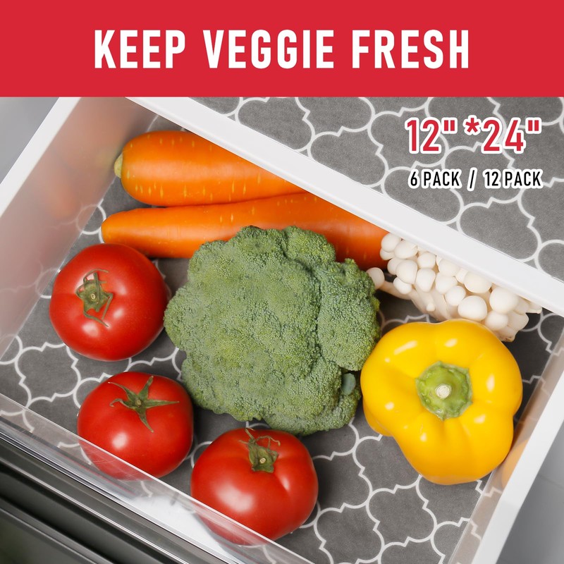 - 🔴Absorb Spills: liner for refrigerator shelves Absorbs excess moisture from fruit and vegetables when placed in fridge bin drawers, shelves, or cabinets, also keep Produce Fresh Longer. Great organizer for your fridge bins & drawers.