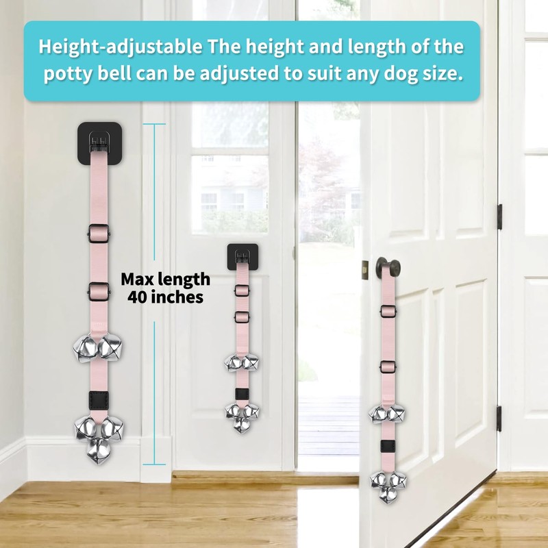 • NEW DESIGN - Each pack of dog doorbell come with a double side tape, dog training doorbell can be placed at any height on the door or the wall, offering more flexibility than the type that can only be hung on the doorknob. Plus, the double-sided tape can be removed without leaving any residue or damaging the surface.