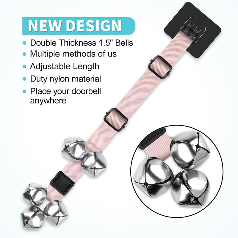• SUPER DURABILITY - Made from heavy duty nylon material, reliable & chew resistant, 5 pcs 1.5" extra loud stainless steel Doorbells, Shiny & Jingle! Black strap with polished metal hardware looks great in virtually any. This sturdy design can withstand even the most enthusiastic dogs, providing a reliable signal for years to come.