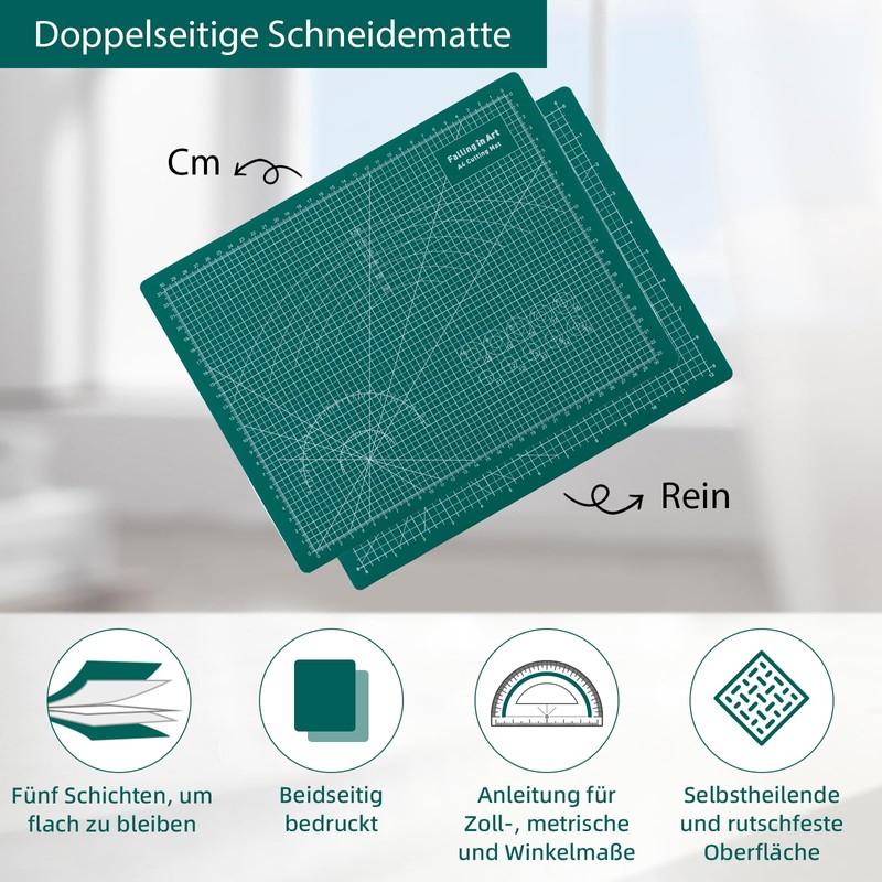 COOZEE Cutting Mat A4, 23 x 30 cm, 5-Layer Self-Healing Cutting Mat, Craft Mat, Cut Resistant, Craft Mat, Desk Mat and Cutting Mat for Sewing, Green