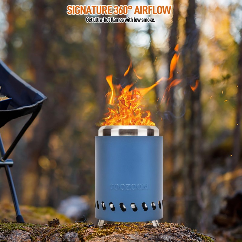 COOZOOM Portable Table Top Fire Pit: 5.5" Stainless Steel Mini Outdoor Stove with Stand, Low Smoke Burning Tabletop Firepit Fueled by Pellets or Wood, for Urban & Suburbs Outside Camping Blue