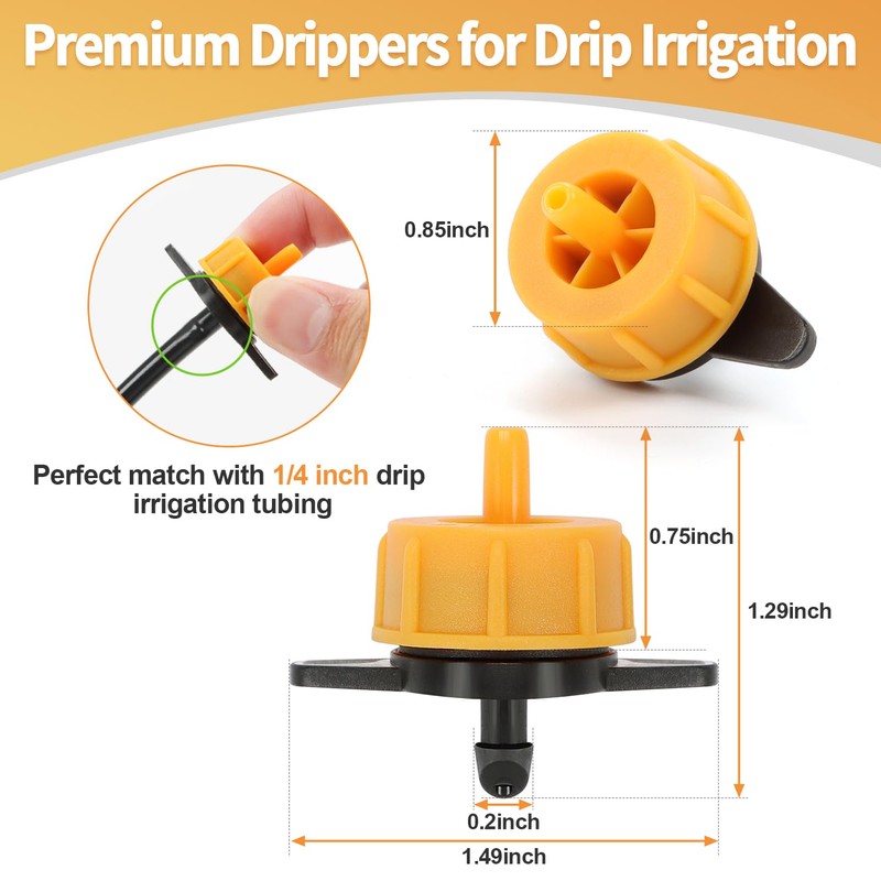 - Package Included: 50 pcs pressure compensating drip emitters in total. It delivers a precise flow rate of 2 gallons per hour (2 GPH), guarantee a consistent flow rate despite fluctuating inlet pressures and positions along the tubing length