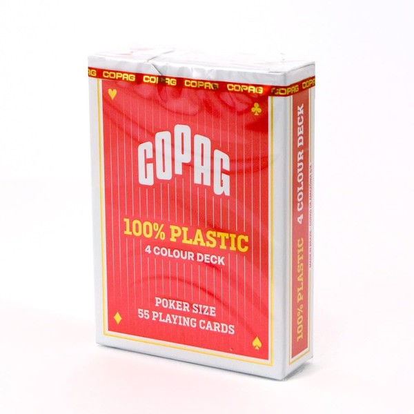 Copag 4 Colour 100% Plastic Playing Cards Poker Size Jumbo Index (Red Back)
