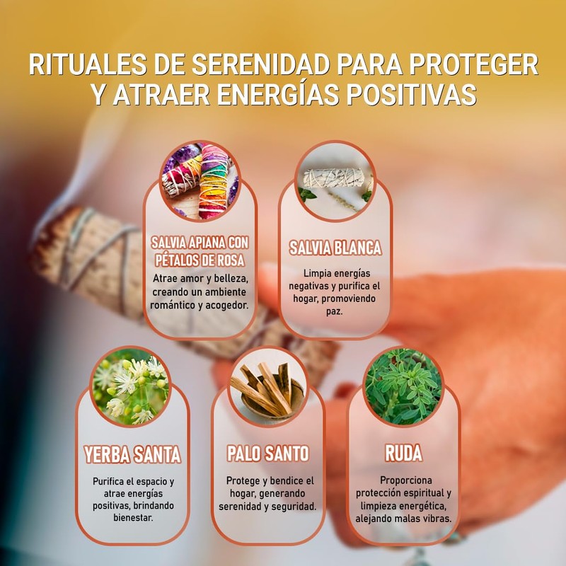 - Experience the purity with the Copalosanto incense set. This set includes California Sage, Ruda, Yerba Santa and Rose Petals, all tied in Palsanto wood. Ideal for household cleaning and protecting your home