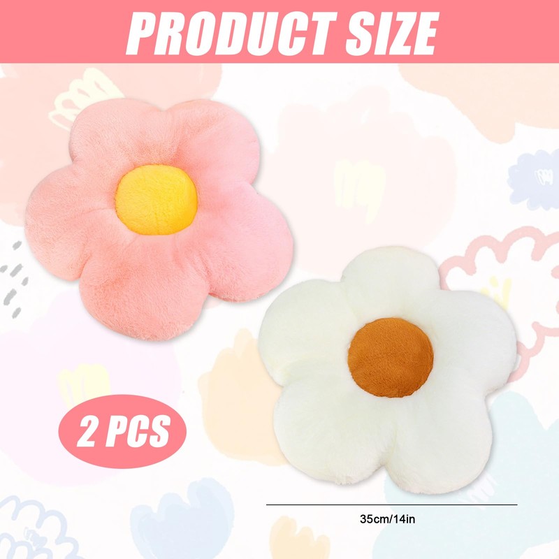 2Pcs Flower Pillow Cute Pillows 35cm Pink White Flower Cushion Floor Pillow Preppy Pillows Daisy Cushion Daisy Pillow Floor Cushions Aesthetic Pillows Cute Cushions Home Bedroom Reading Corner Decor