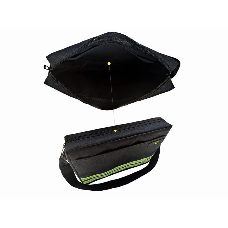Copechilla Black tool bag with 2 light strips, adjustable shoulder straps, two-way zip, two compartments inside and large front pocket, for small tools