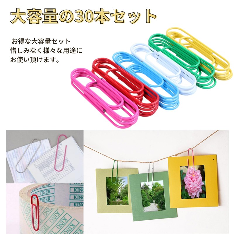 Copeflap Zem Clips, Extra Large, Color, Paper Clips, 3.9 inches (100 mm), Pack of 30