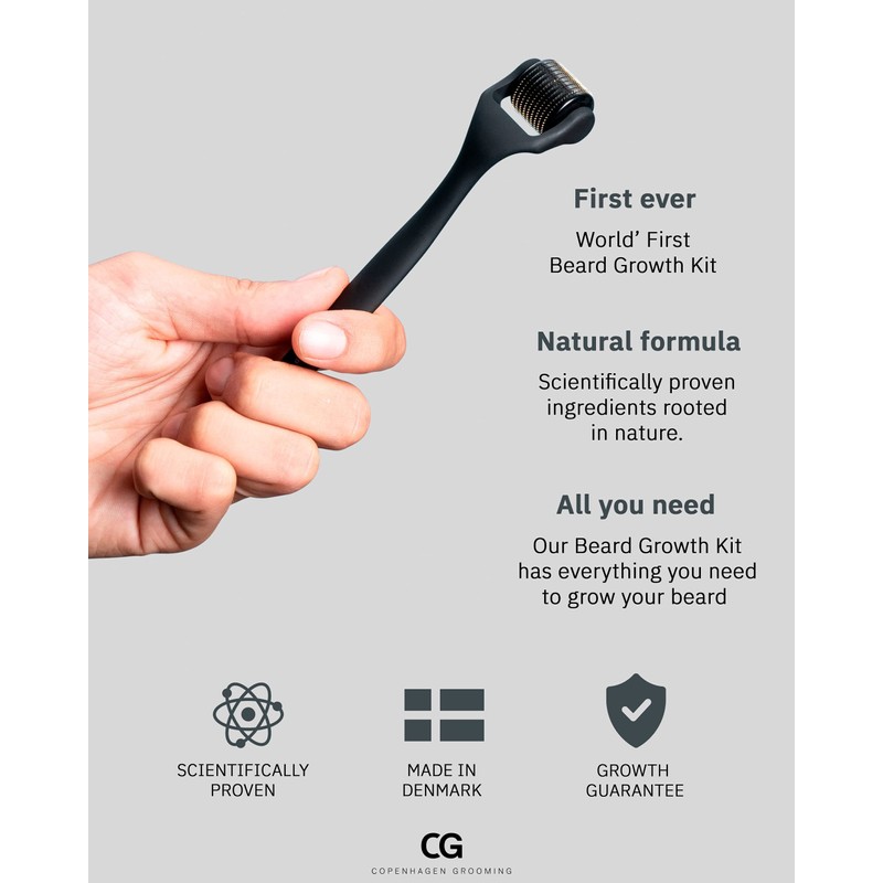 Copenhagen Grooming Beard Growth Kit - The Original Beard Growth Kit for Men with Derma Beard Roller, Cleanser, Activator Serum Beard Oil & Beard Keychain Comb (50 Days Supply)