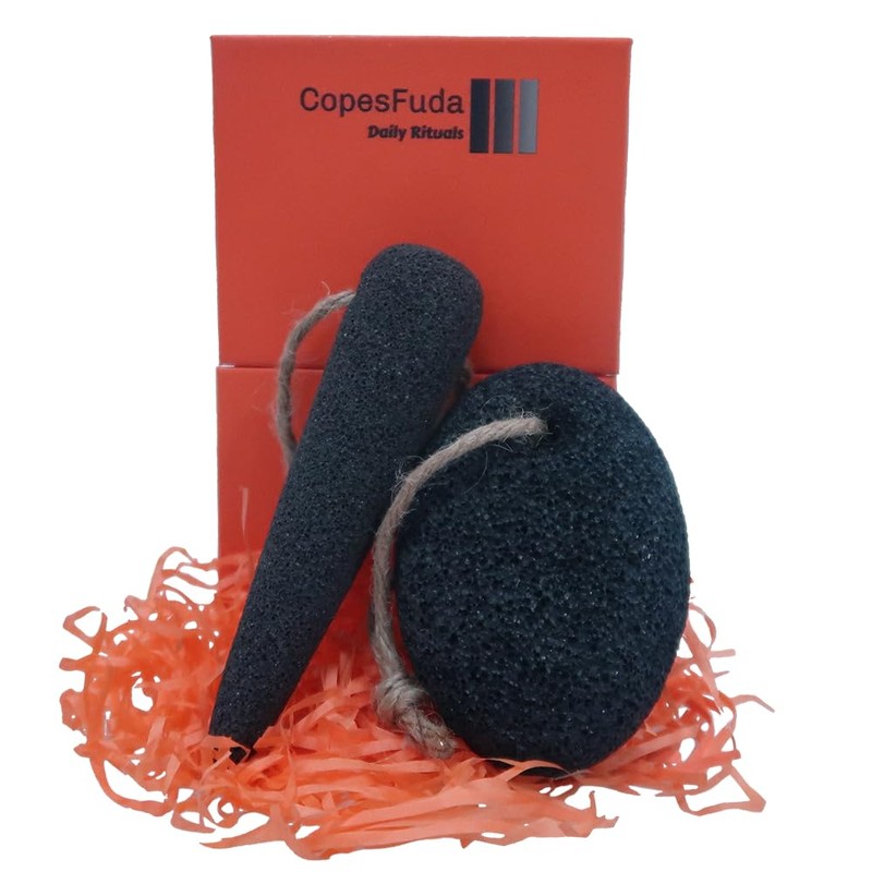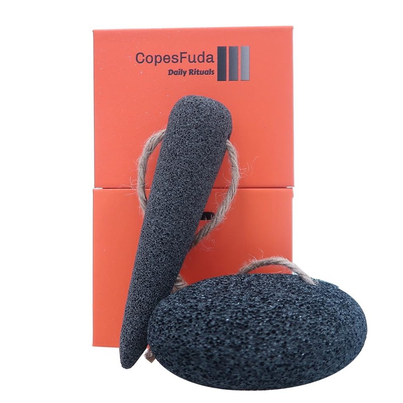 CopesFuda Natural Volcanic Pumice Stone Set for Feet Hands with Bamboo Charcoal,2 Pieces, Foot Scrubber for Callus Dead Skin Removal and Deep Cleaning, Conical Shape for Hard-to-Reach Areas