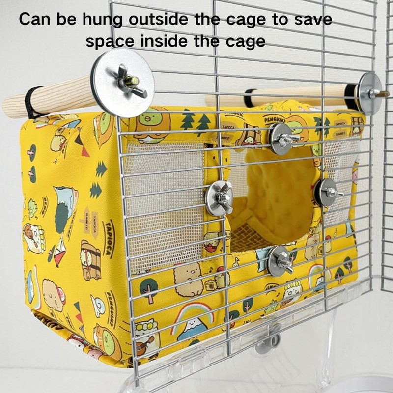 Copfeu Large Spring Summer Breathable Bird Nest House, Bird Bed for Cage, Parrot Nest Snuggle Shed Hut for Four Seasons, Easy to Install for Quaker Lovebirds (Small,Yellow)