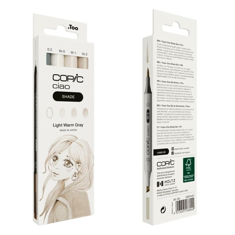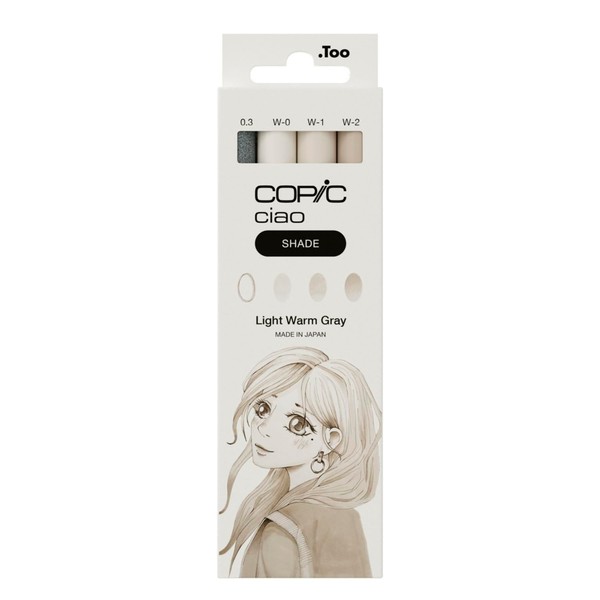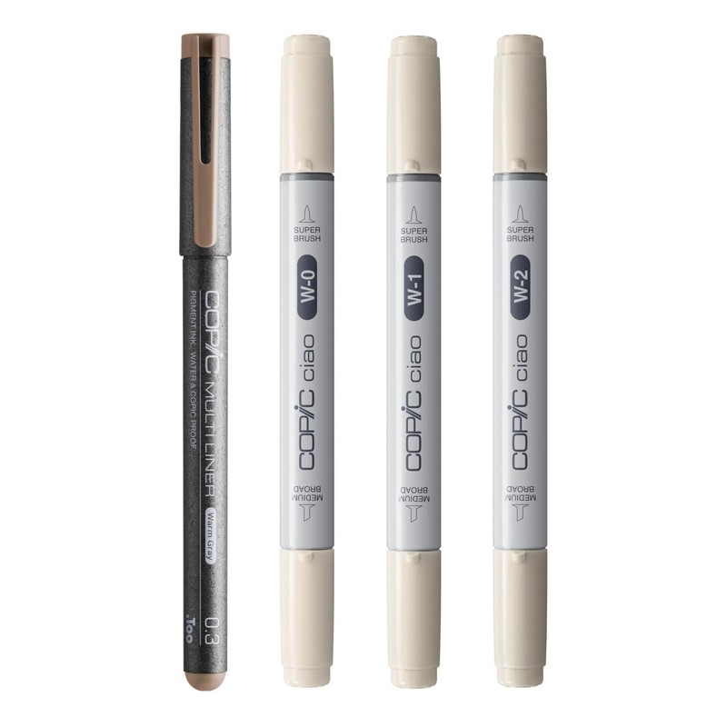 Copic Ciao Shade Set Light Warm Grey, 3 Twin Markers with One Medium and One Brush Tip, Includes Multiliner Warm Grey 0.3 mm