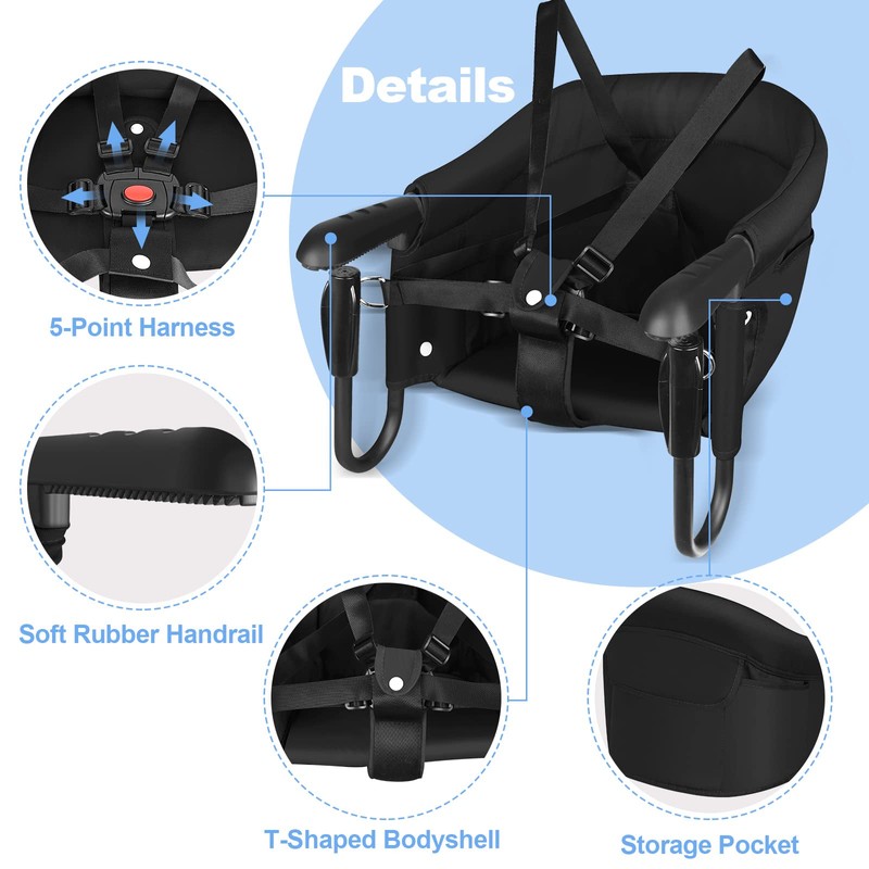 - 【Portable & Collapsible】The clip on chair is not heavy (4.4 pounds) and can be folded flat. It also comes with a travel-friendly carry bag for you to pack and carry easily. The uniquely designed rear storage bag can store baby bottles, toys, snacks, etc.