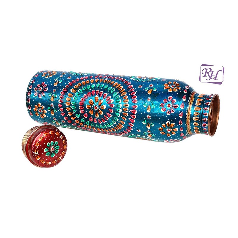 - This Hand Painted Bottle is Washable and Made Of Pure Copper It is Very Comfortable and Artistic Bottle for serve Water to Any One