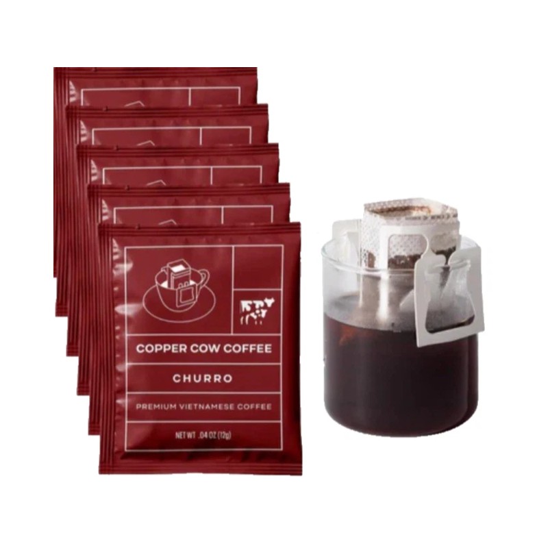 Copper Cow Churro Single Serve Pour-Over Coffee w/ Latte Creamer