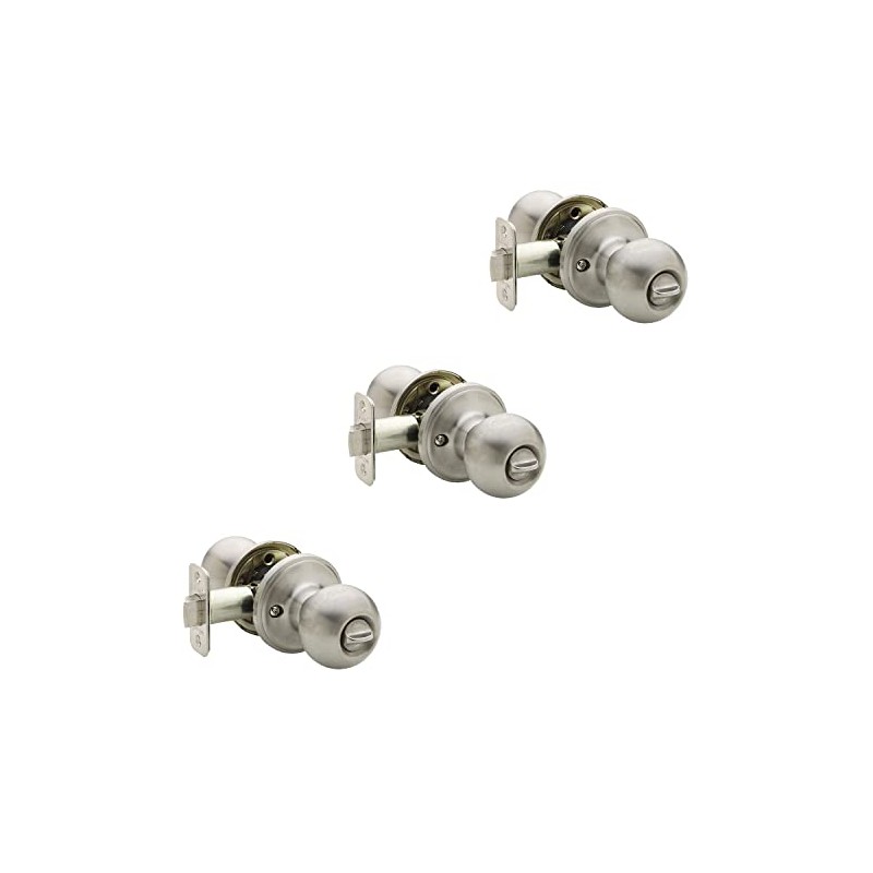 Copper Creek BK2030SS-3 Ball Door Knob, Privacy Function, 3 Pack, Satin Stainless
