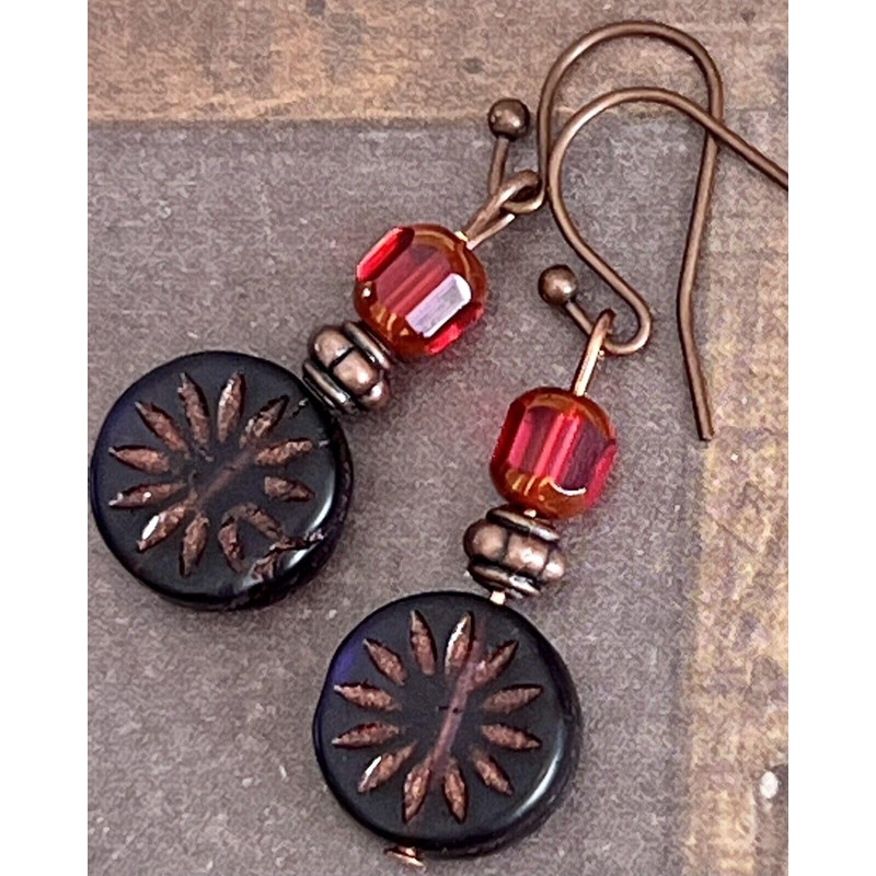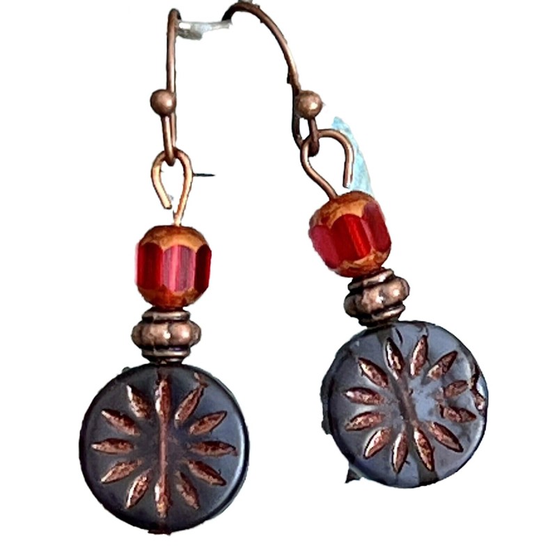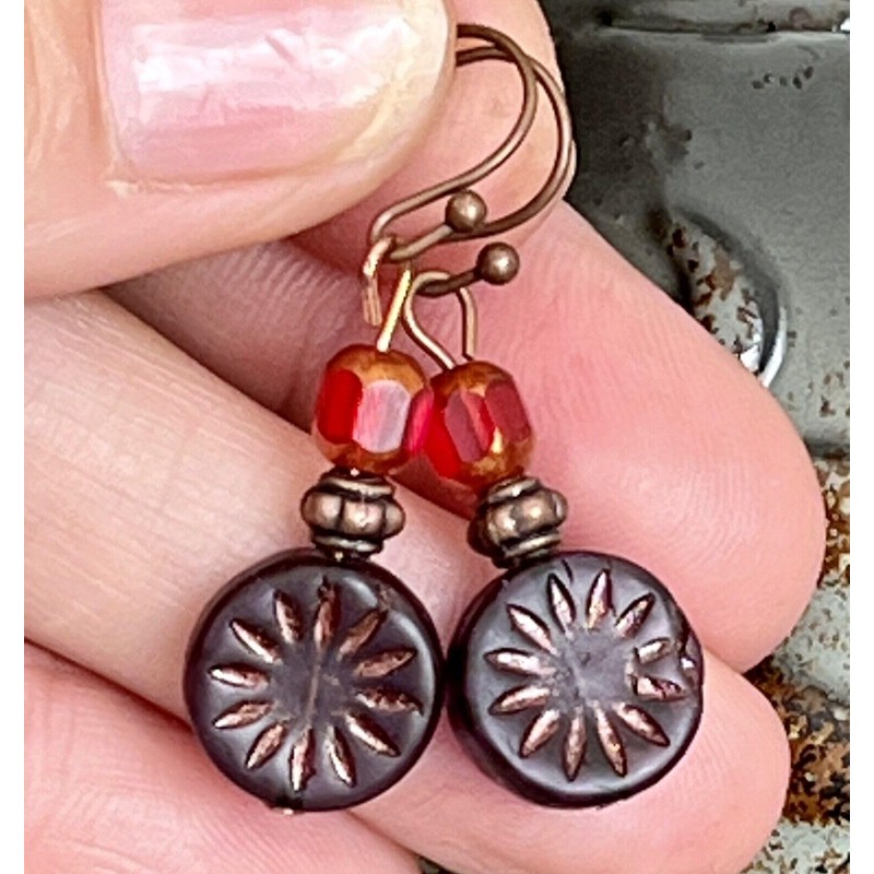 Copper, Deep Purple and Red Bead Earrings