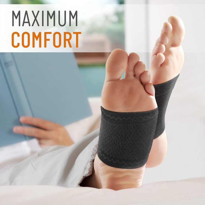 - FEET PAIN RELIEF - Copper Compression Arch Support is designed specifically to ease your feet pains by applying pressure on your inner foot section, helping to maintain blood flow and reduce discomfort, stress and swelling. Suitable for people suffering from: plantar fasciitis, plantar fascial fibromatosis, arthritis, fallen arches, flat feet, heel, toe and bunion pains. Also fit For people on their feet all day at work, or during / after any sport activity by reducing fatigue and speed recovery
