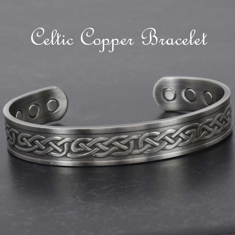 - Outstanding Quality: Handmade from 99.9% solid copper, this bracelet offers exceptional properties and effectiveness. The hypoallergenic pewter plating is fade-resistant and provides a beautiful “Antique Silver” finish that won’t tarnish, making it perfect for those who are sensitive to copper. Bracelet width: 13mm. Thickness: 3mm.