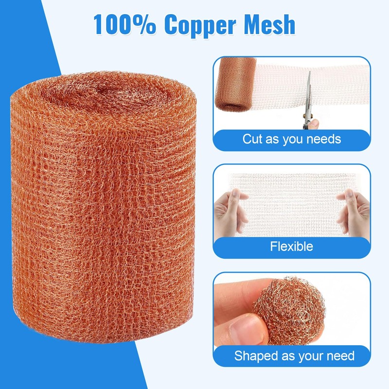 - 【Premium Material】Crafted from 100% pure copper, this mesh is both flexible and durable, ensuring long-lasting performance. The ideal size of 5 inches x 33 feet makes it versatile for various projects, from DIY to home protection.