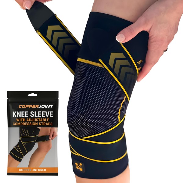 - Ultimate Support for Multiple Conditions - Our graduated and optimal compression brace is ideal for continual support and a variety of conditions including arthritis, meniscus tear, joint injuries, patellar tendinitis, and more. CopperJoint's professional compression knee sleeve offers the ultimate comfort along with non-slip grip bands, breathable material, and easily adjustable cross over straps for an adjustable fit with the ultimate support.