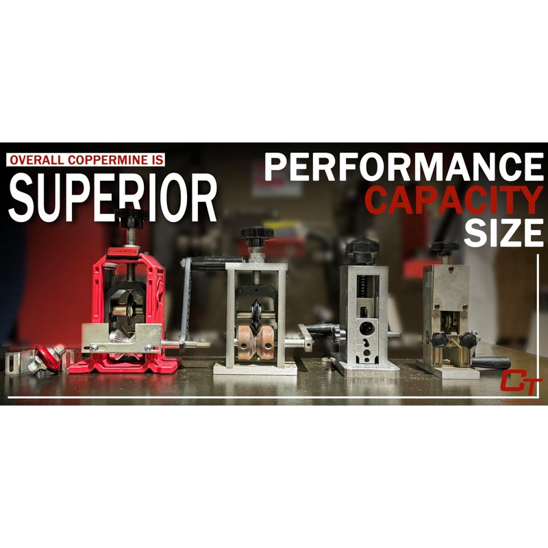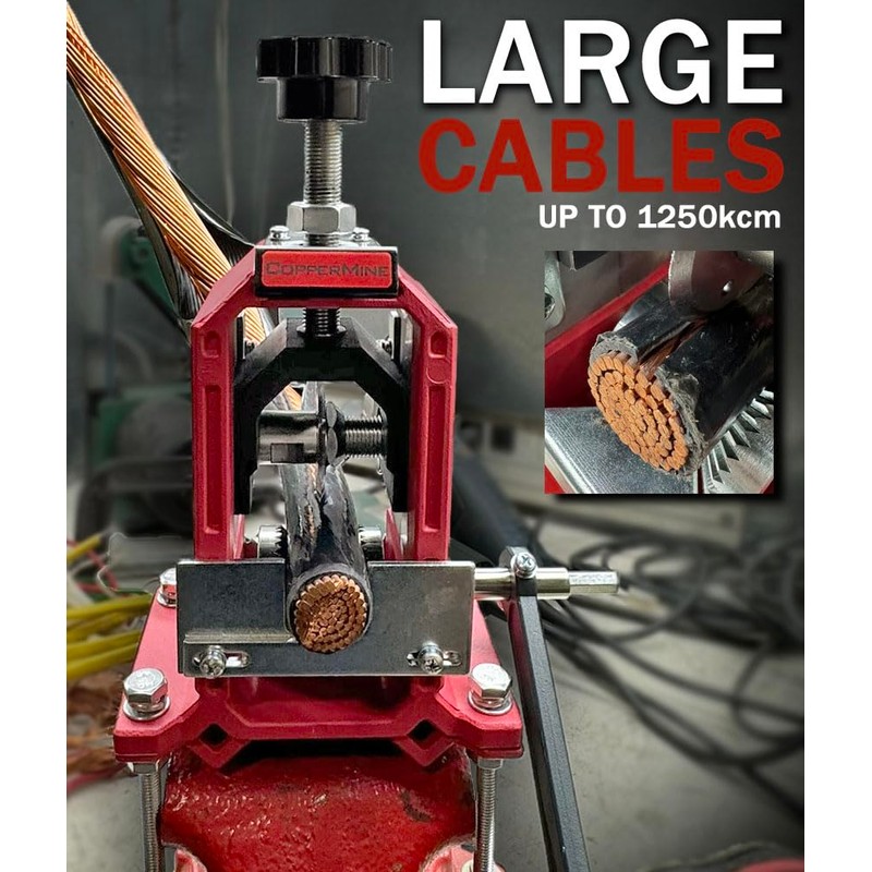 - CopperMine CT-302: Strong and durable aluminum cast mold construction copper wire stripping machine for long lasting use. Precision wire stripper operated manually by hand crank or drill.