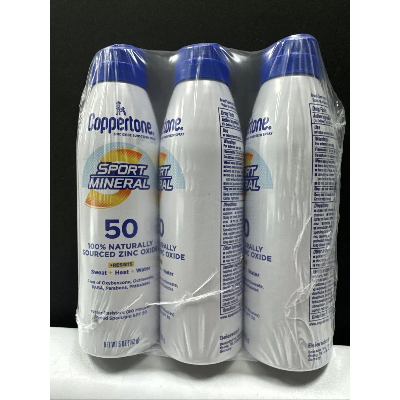 3x Coppertone Sport Mineral Sunscreen Spray(Exp. 01/24)Broad Spectrum SPF50 5oz.