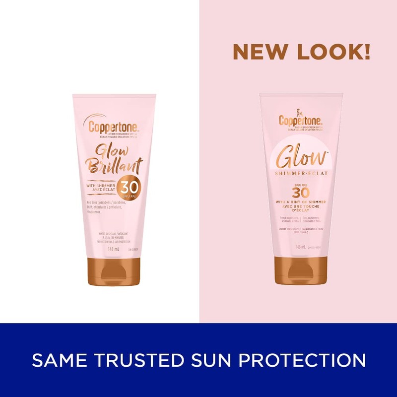 Coppertone Glow Sunscreen SPF 30 (148 mL), Lightweight Sunscreen with a Hint of Shimmer for Beautiful Glow, Quick-Dry Body Lotion Sun Protection with No PABA or Parabens