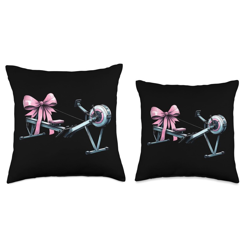 Coquette Bow Rowing Machine Rowing Workout Girl Mom Pink Throw Pillow