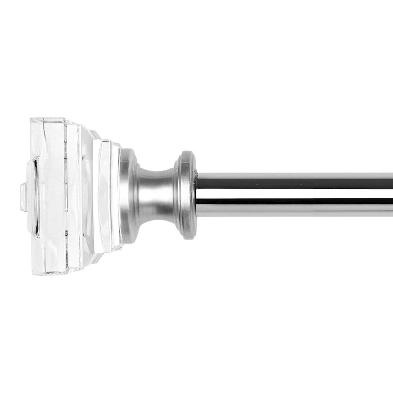 Coquilles Acrylic Square Finials Curtain Rod,3/4" Diameter Single Deorative Curtain Rod, Adjustable Length from 86 to 120 Inches,Chrome
