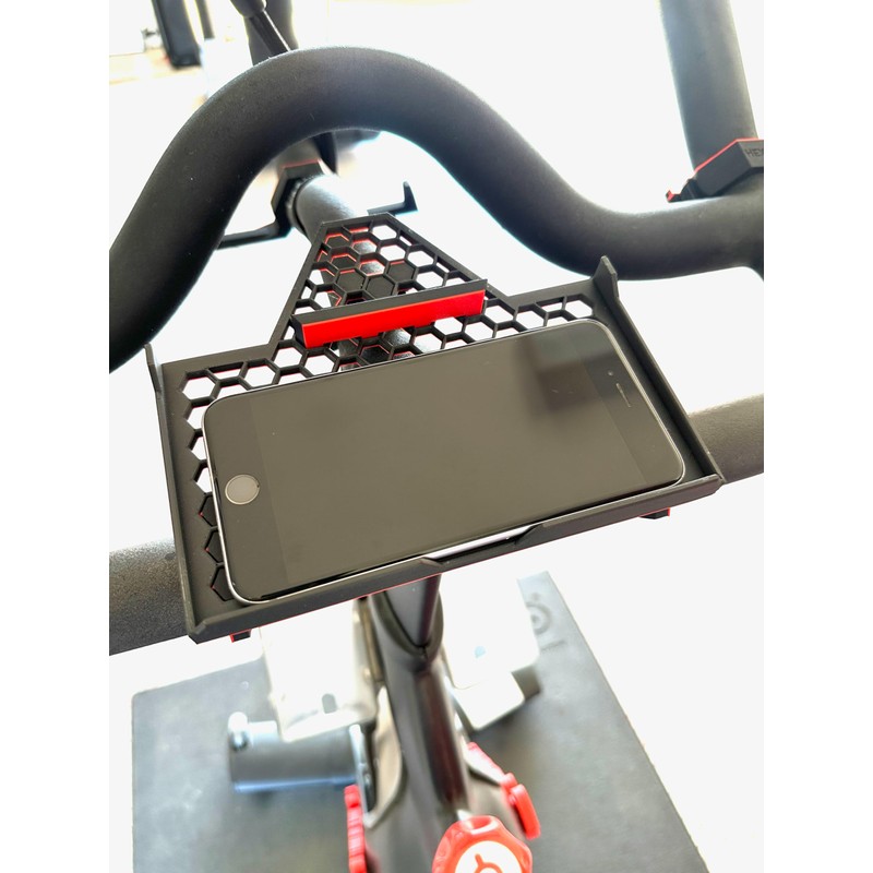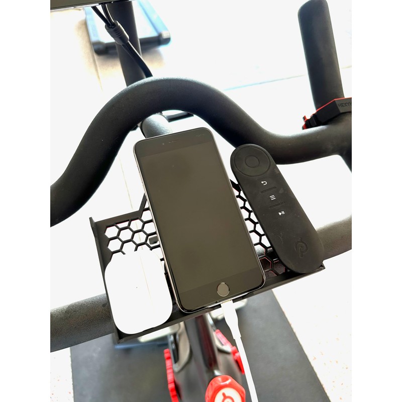 Introducing the HexyBoard, the ultimate accessory designed for Peloton bike owners seeking added convenience and ease of use. This innovative board securely attaches to your bike, providing a stable platform to hold your phone, tablet, remote, and headphones. With the HexyBoard, you can easily view your phone and stay connected while you ride. Enjoy your favorite music or shows without interruption, thanks to a design that keeps your device cool and prevents overheating. The HexyBoard also features an adjustable device mount, allowing you to position your screen for optimal viewing and comfort. Crafted from durable materials and designed with a sleek, streamlined appearance, the HexyBoard is the perfect addition to your indoor cycling setup. Upgrade your ride today with the HexyBoard—designed for bikes like yours!