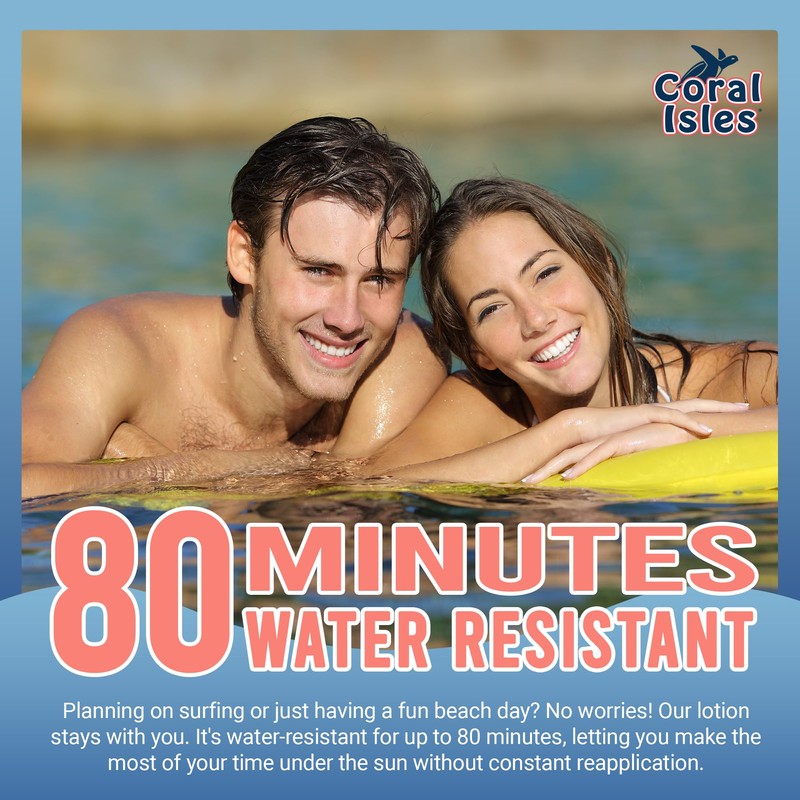 - WATER RESISTANT AND LONG LASTING: Our sunscreen offers minutes of water resistance, ensuring prolonged protection even during water activities. To maximize its effectiveness, apply it minutes prior to sun exposure and reapply every hours or after towel drying. Suitable for all ages.