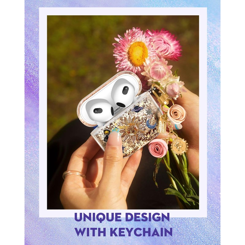 Coralogo for Airpods 3rd Generation Case - Quicksand Liquid Cute Mujer Girl Women Aesthetic Cover Sparkling Sparkle Glitter Bling Sparkly Sun Moon Keychain Girly for Airpods 3 Case Cover