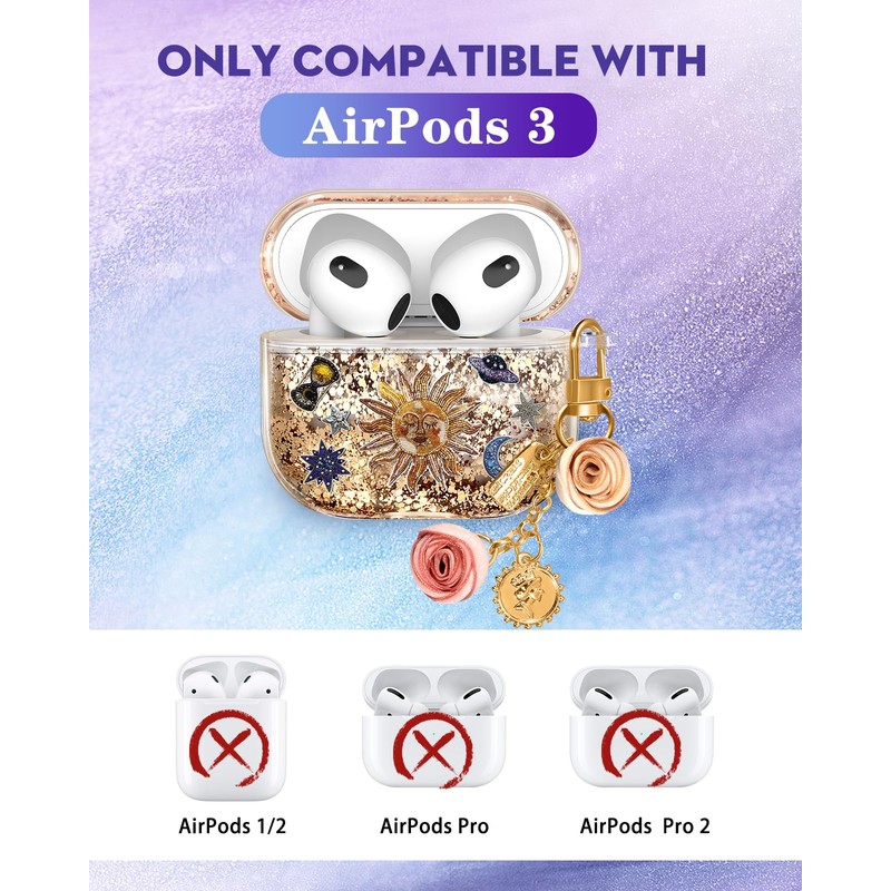 - Liquid Design: This for Apple for Airpods 3 case cover glitter with design case has liquid glitter design, which is a very aesthetic and girly element and has a prominent personality. The chic element is suitable for all Girl, and it 's a good choice to give it to your family and girl friends