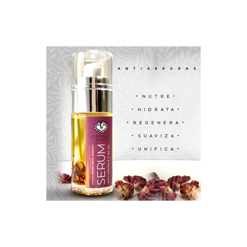 corasú - CORASÚ SÉRUM facial antiarrugas 40ml | 100% NATURAL | ORGÁNICO | Con rosa mosqueta, helicriso (la flor de la eterna juventud) y extractos vegetales antioxidantes y regenerantes | NO deja sensación grasosa | Piel SEDOSA y RADIANTE | NUTRE. REGENERA. SUAVIZA. UNIFICA EL TONO | Controla y previene puntos negros | NO comedogénico | UNISEX | Vegano | TOXIC FREE | Sin agentes cancerígenos | SIN disruptores hormonales | EWG 1-3.. 🏆 Reconocido por su excelente relación calidad-precio. Construcción robusta y atención al detalle. 🏆 Recomendado por expertos. Ideal para quienes buscan lo mejor en calidad y estilo. Producto auténtico con satisfacción total asegurada. ¡No te quedes sin el tuyo y aprovecha esta oportunidad única!