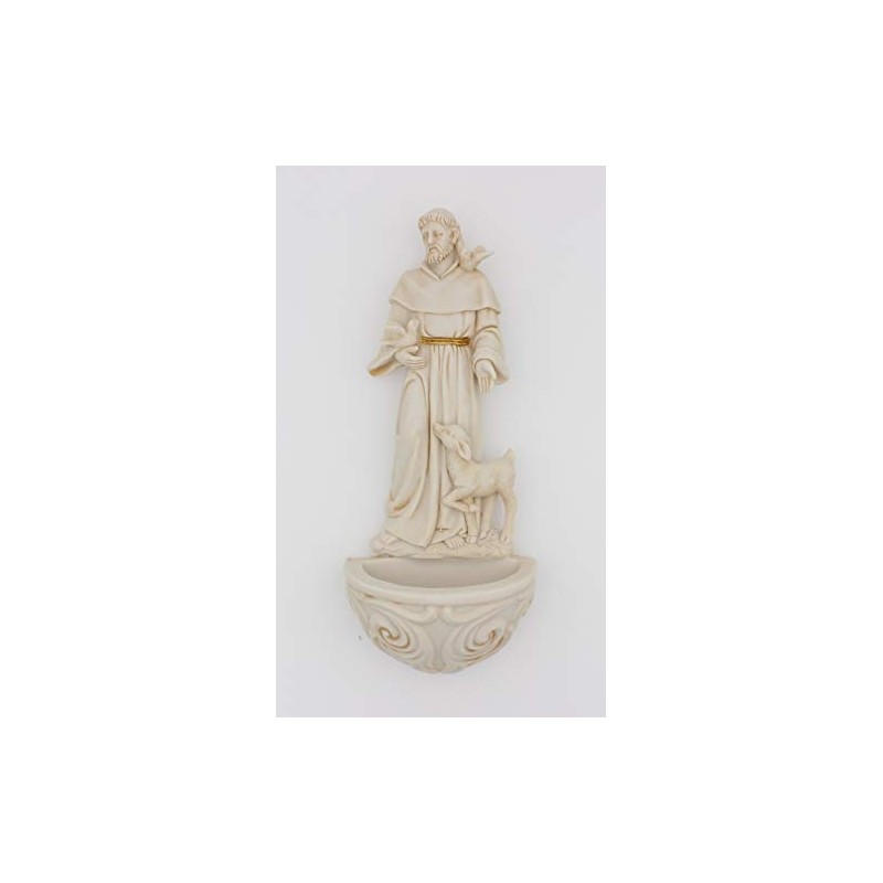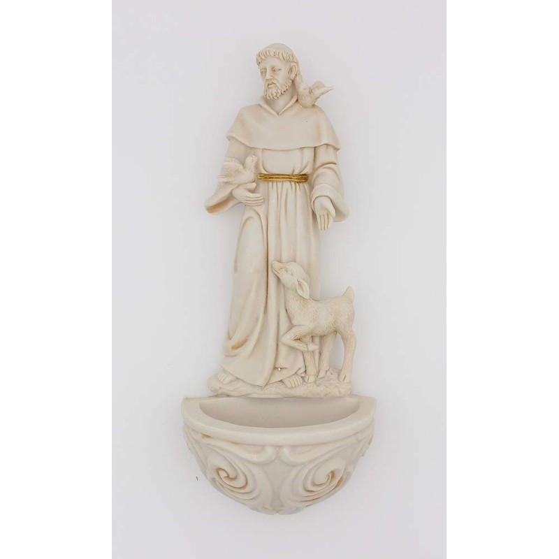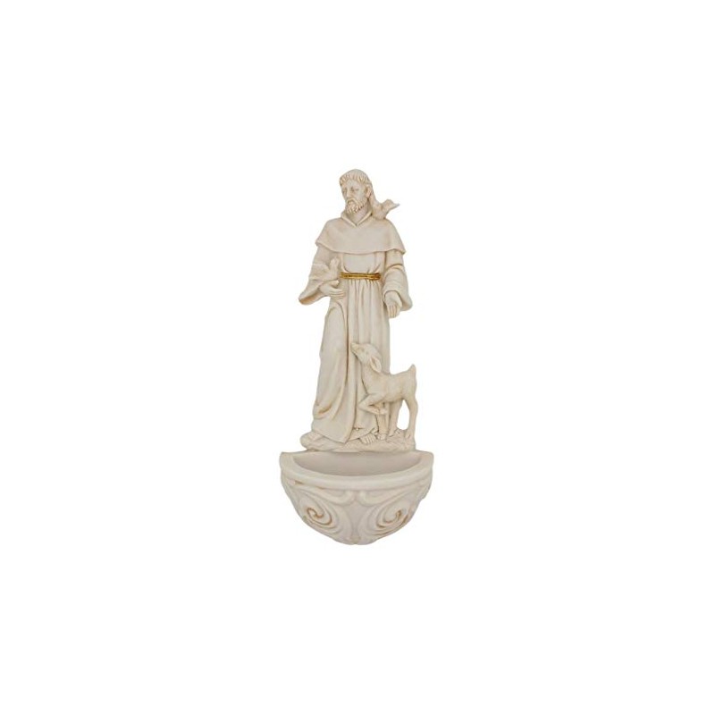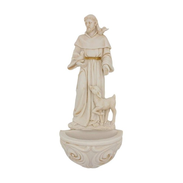 Corbase Religious Resin St. Francis with Doves Holy Water Font, 6 3/4 Inch