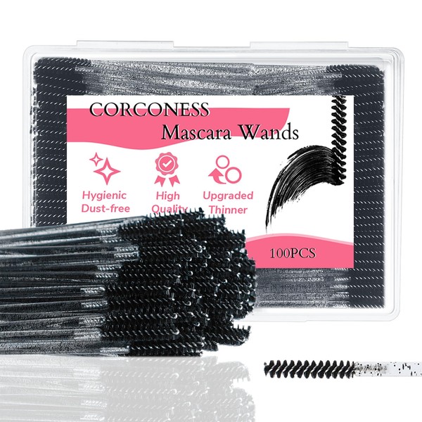 Corconess 100Pcs Mini Spoolies For Lashes,Mascara Wands Spoolies For Brows Disposable Eyebrow Brush Micro Lash Spoolies Brow Brush Spoolie For Eyelash Extensions Lash Tech Supplies