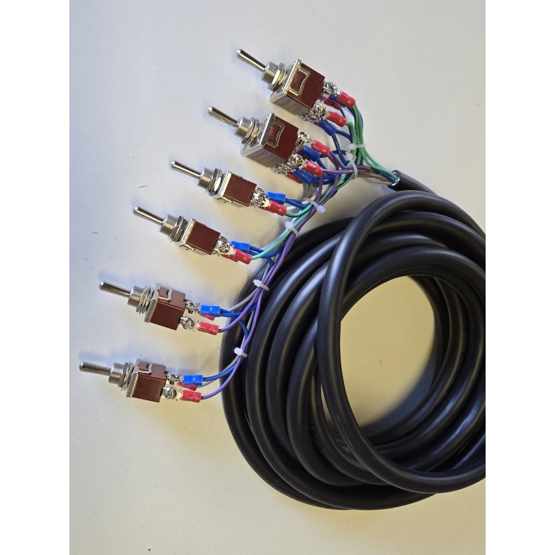 PRE WIRED WITH SWITCH Kit  .Hydraulic switch kit :includes (2) -6 prong front and back plus 4- 3prong for individual corners total of 6 switches. Switch cord 17 ft long 9 wire 18 g long cord.included