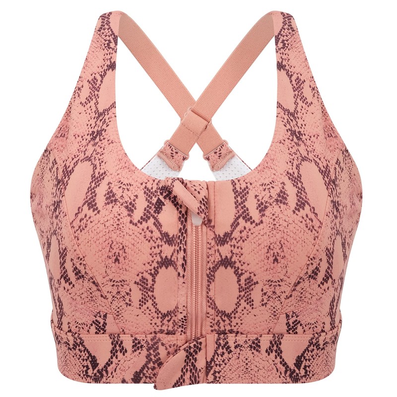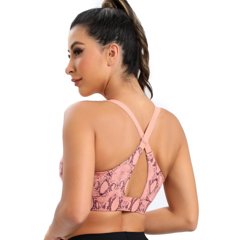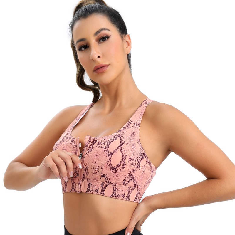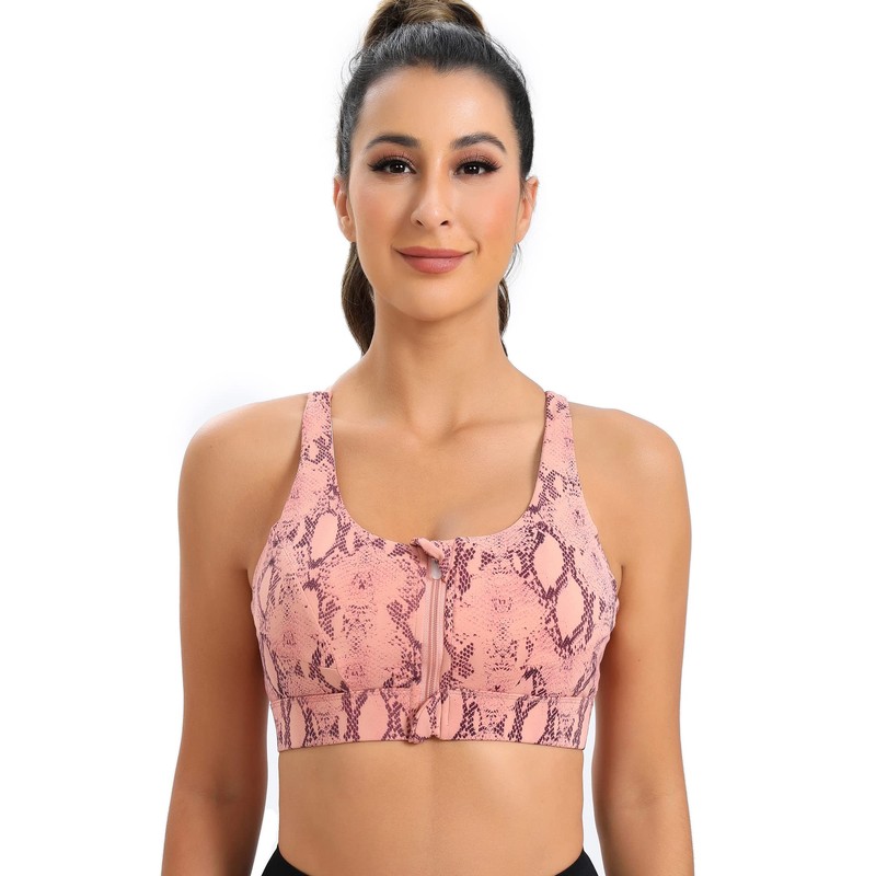 Cordaw Zip Front Sports Bra Adjustable Straps High Support Medium Impact Zipper Front Hook Running Bra Crisscross Padded-Pink Snake 4XL