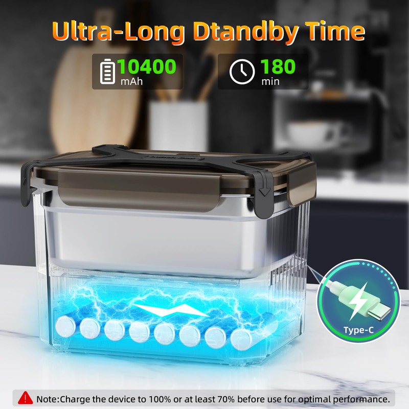 Special Feature:Cordless Electric Lunch Box – Self-Heating, Battery Powered Food Warmer for Work, Travel , Meal Prep Friendly, Electric Heated Lunchbox, Meal Prep Containers, Battery Powered and Cordless