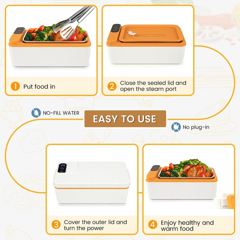 - 【Intelligent Heat Preservation and Timed Heating】The cordless electric lunch box offers multiple heating time options (from 10 to 60 minutes), and the heat preservation function provides various heat preservation time options (from 30 minutes to 4 hours) to meet your different requirements.