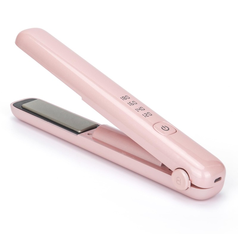 Cordless Hair Straightener & Curling Iron – Rechargeable with 45-Min Runtime for Salon-Perfect Results at Home (Pink)