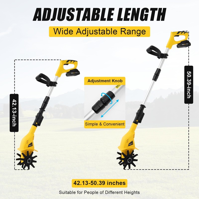 • Lightweight & Easy to Use: Weighing only 6.61 lbs, this handheld cultivator is easy to operate with a one-press start/stop function and a safety switch for added security.